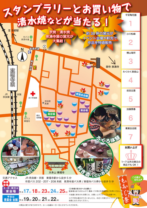 - 場所:東福寺~泉涌寺 窯元一帯にて毎日開催