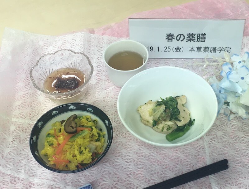 ごはんは、美しい山梔子(くちなしの実)の色あいがとってもきれい。
