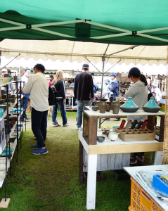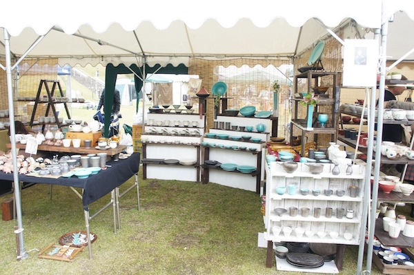 太陽の広場の青々とした芝生の上に、作家さんのテントがズラリと立ち並び、展示販売が行われます。