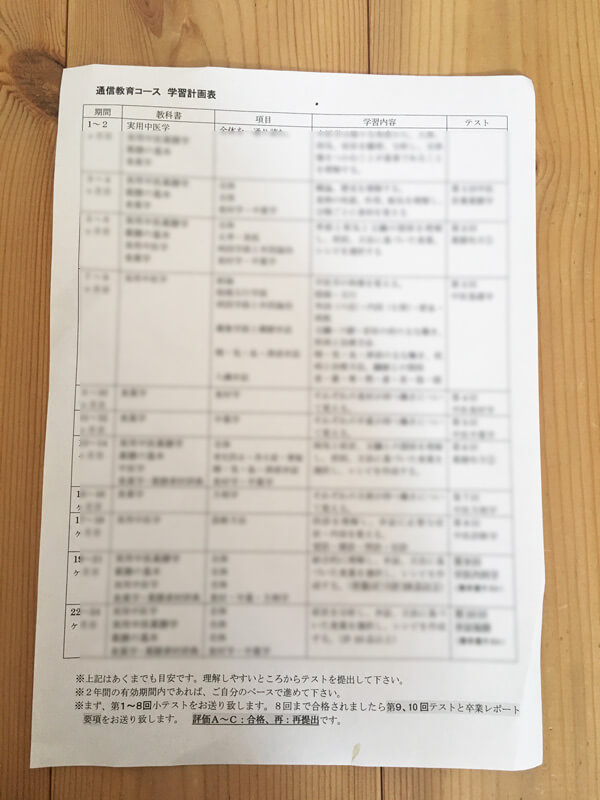 「本草薬膳学院の通信教育コースに、学習計画はあるの?」