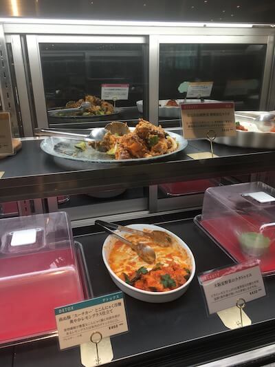 野菜のデリからお肉のガッツリ系のメニューまで並べられています。
