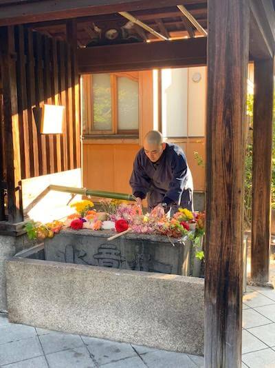 お庭に置かれた花手水、とても美しいので一見の価値あり!【窯元もみじまつり】のチラシを持参で、勝林寺の拝観料が割引になるので、ぜひこの機会をご利用ください。