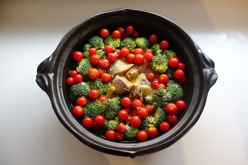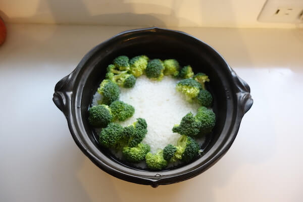 - ③②の上に、洗って小房に切ったブロッコリーを並べる。