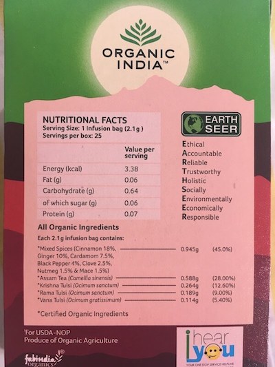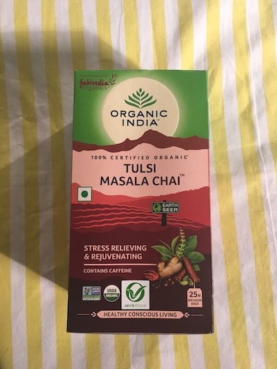 そこで今回参考にしたのが、すべてオーガニック材料で作られたインドの「TULSI TEA」。以前、インドのお土産でもらったのですが、すご〜くおいしかったので、入っているスパイスや分量を参考にすることにしました!やっぱり、チャイといえばインドです。