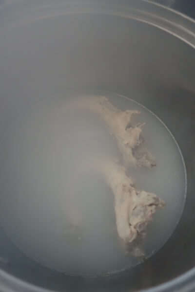 まずトライしてみたのが鶏がらスープ鶏がらって普通にスーパーで売ってるんですね。実際に見るのも買うのも初めてです。食べるところがほとんどないせいか、安い!