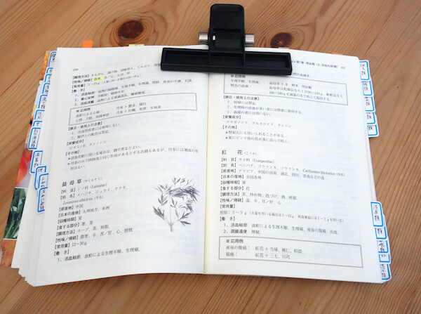 かなり大きめで固定力があるので、見たいページにはさめば、そのまま開いてキープできます。もちろん、薬膳の勉強だけでなく辞書やレシピ本などを見る時にも便利。普通のクリップよりかなり大きめで重さもあるので、立てて固定することもできます。