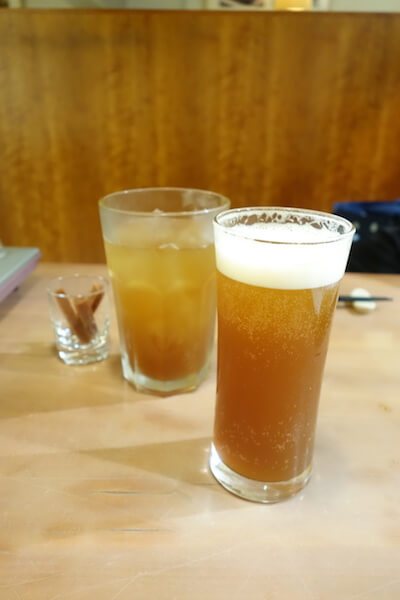 飲んでみると、生姜の辛味がきいておいしい!なかなか新鮮なテイスト。よく考えたら、ビールとジンジャーエールのカクテル「シャンディガフ」の薬膳版なんですよね。(これを書きながら、家でやってみようと思い立ちました)
