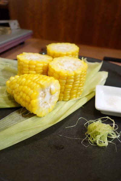 北海道産とうもろこしゴールドラッシュは、シンプルに蒸したもの。茯苓塩につけていただくとより甘さが引き立ちます。
