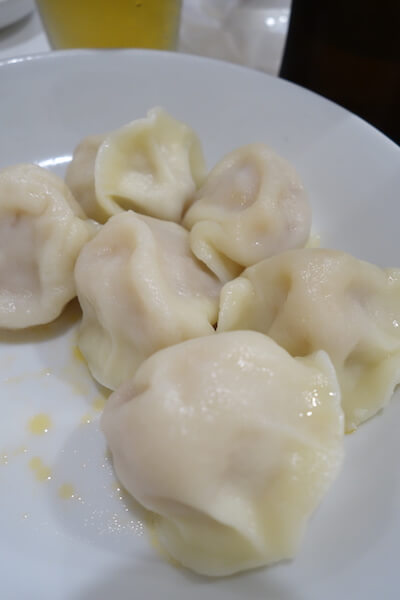 注文の際「何がおすすめですか?」と聞いたら「コレネ」と教えてもらった羊肉水餃子。中は羊肉のあんが入っていて、皮がもっちり、ぷるんとした中国式です。