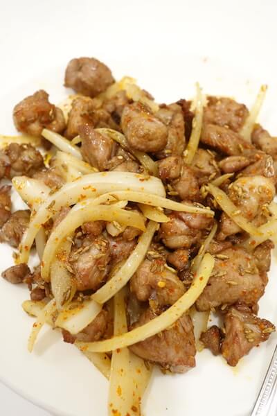 孜然羊肉(ラム肉のクミン風炒め)も同じく旅愁あふれる一品。コリコリと食べ応えのある羊肉に、クミンの香りが爽やかさをプラスします。
