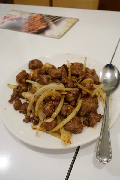 見ていると豚や鶏、麺や豆腐のメニューもあるのですが、孜然羊肉(ラム肉のクミン風炒め)や羊肉水餃(ラム肉の水餃子)などなど、やっぱり羊肉づくし。圧倒的な羊感です。