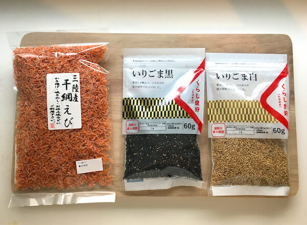 エビを入れるのがコツですが、量はごまよりも少なくしてくださいね。