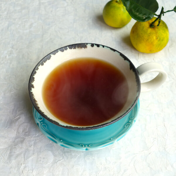 陳皮×紅茶×カルダモンのトリオ。しっかり煮出した紅茶と陳皮に、カルダモンを加えました。味わいはちょっぴりビターで、陳皮とカルダモンの香りが大人っぽい一杯です。体をあたため湿気を取る組み合わせなので、寒い雨の日や体がだるくてむくみが気になるときにおすすめです。