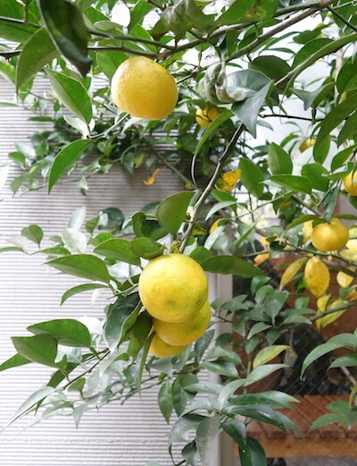 緑の時に収穫しないでいたら、ゆずのような黄色に…。