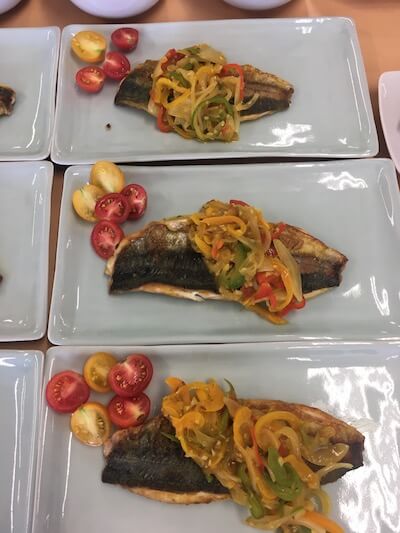 以前調理実習で作った「あじとパプリカのカレー風味」。体をあたためるあじ、パプリカ、カレー粉などを使っています。