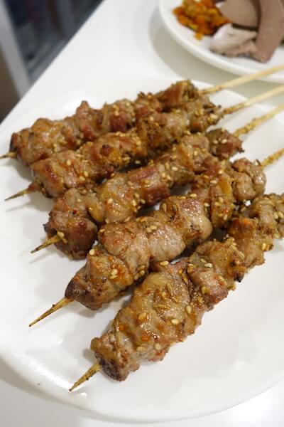 中国東北部では羊肉がポピュラー。東京神田のお店「味坊」でいただいた串焼き。