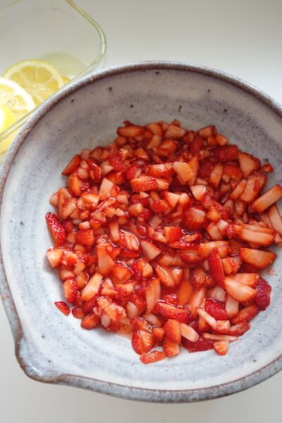 • ①いちご6粒は細かく切る。