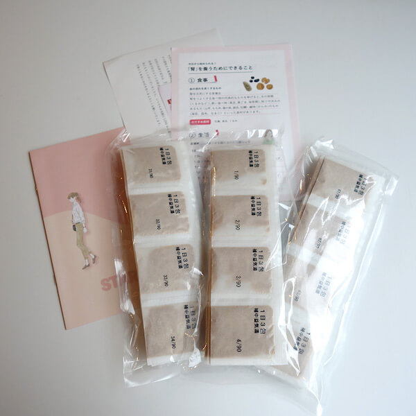 送ってもらった薬は散剤(粉状)です。そのまま飲んでもいいのですが、お湯に溶いて飲むと効果アップ。お茶感覚で飲めます。