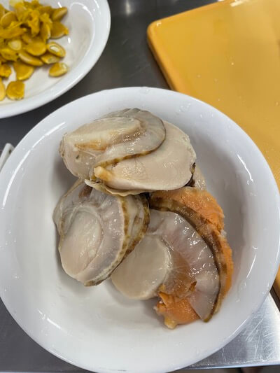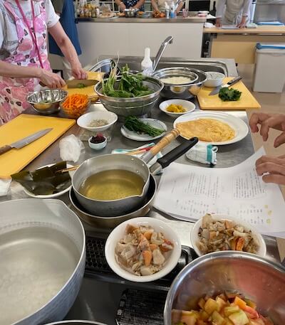 ほたてが立派でびっくり!ほたては更年期世代のほてり、のぼせなどにもおすすめの食材です。ちなみに食材はすべて講座で用意、下準備までしてくださっています。ありがたい…!