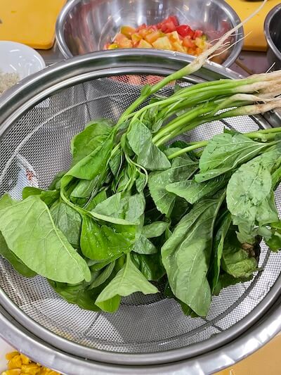 こちらはひゆ菜。薬膳で五菜のうちのひとつ「葵」の変種だそうです。初めていただきましたが、あまりくせがなく、炒め物や和物などいろいろな料理に使えて汎用性が高いとか。特に夏は青菜が少なくなるので、年中獲れるひゆ菜は重宝するそうです。
