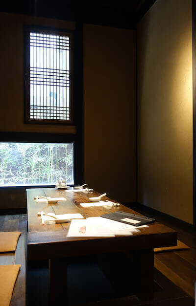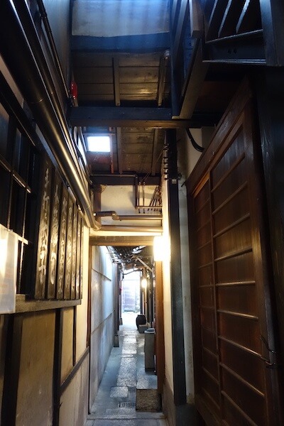 奥に細長いのが京町家の特徴ですが、こちらも細長い作りです。台所を通って奥が客席。2階席もあり、土日でお客さんが多い時などに使われるそうです。