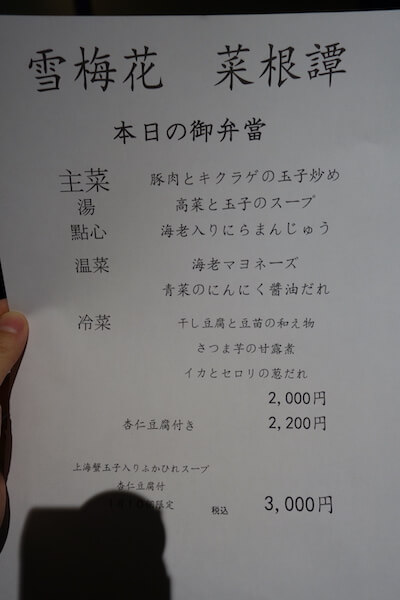 メニューはお弁当風のランチコースが。薬膳的に秋にぴったりの主菜で惹かれたのですが、今回はおひとりさまということで、単品の白胡麻坦々麺をチョイス。