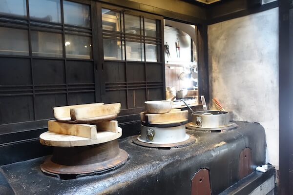 中に入っていくと土間になっていて、おくどさん(台所)があります。実際に使われていて、風情たっぷり。