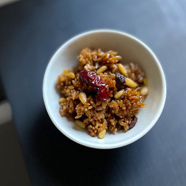 薬膳ごはんを家で食べてみたところ、おこわのようなしっかり食感で、甘〜い!けど不思議とクセになる味!レーズン、なつめ、松の実がたっぷり入っていて、女性に不足しがちな気血をしっかり補ってくれる薬膳ごはんでした。