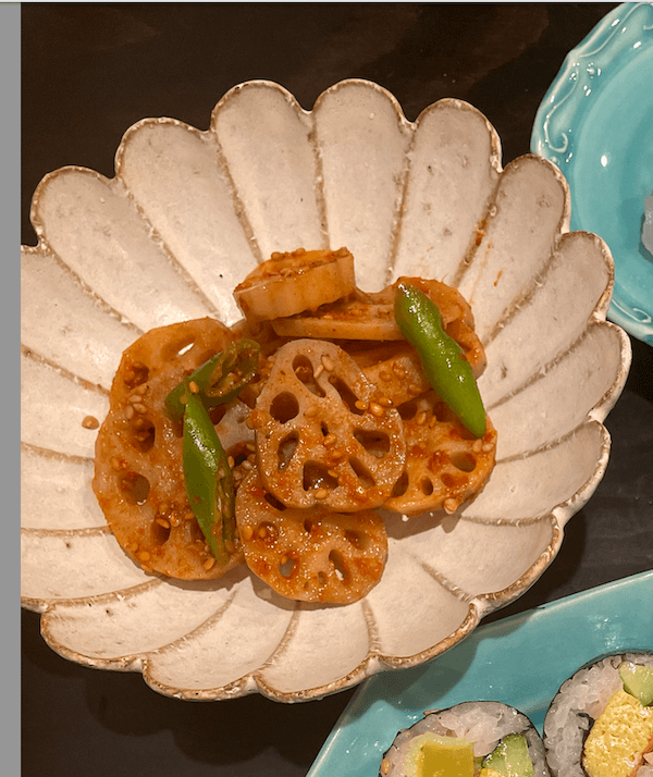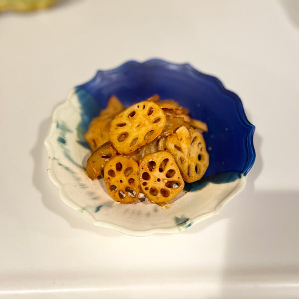 薬膳でれんこんは「女性に必要な陰液(血、水、精)を補うので3日に1度食べるとよい」といわれます。体を冷やす寒性なので、体をあたためる唐辛子入りコチュジャンで味付けすることで、冷やす作用を少し和らげてくれそう。何よりおいしい!