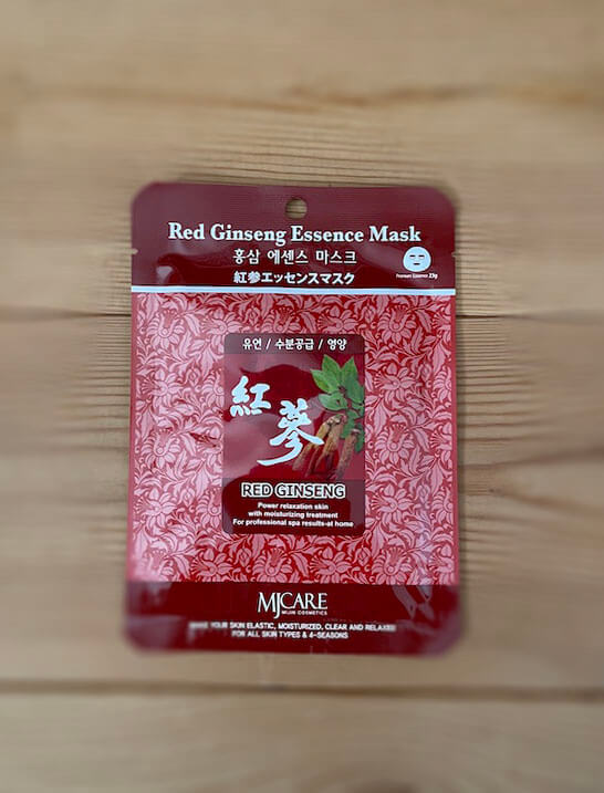 紅参のシートマスクです。封をあけたとたん、ふわ〜っと独特の香りが漂います。やっぱり紅参、大活躍ですね。たっぷり潤うのに、使ったあとは意外とベタつかない!次の日もいい感じでした♪