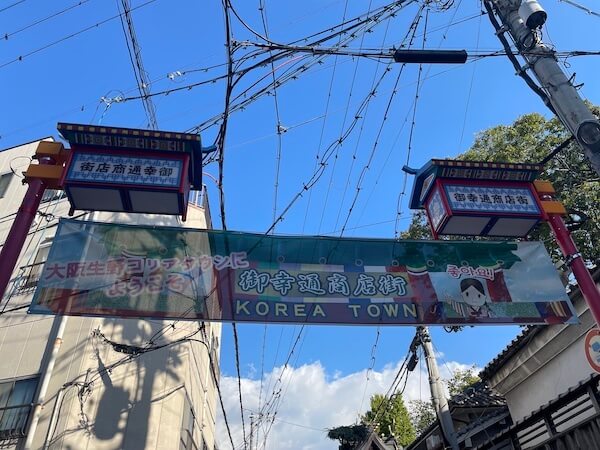 駅からぶらぶら歩いて、大阪生野コリアンタウンに到着!韓国料理の店、K-popグッズの店、今どきの韓国カフェ、コスメのお店などがひしめき合うワンダーランドの入り口です。