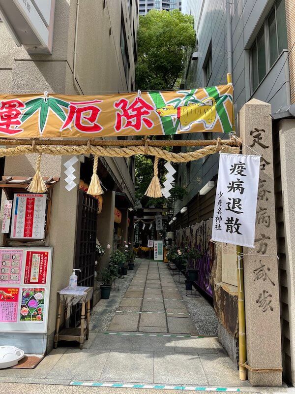 薬の神様として有名な「少彦名神社」です。少彦名命スクナヒコナと薬祖神・神農炎帝が祀られていて病気平癒・健康成就のご利益アリの薬の神さん。病の治癒を願ってお参りする方が多いんですよ。