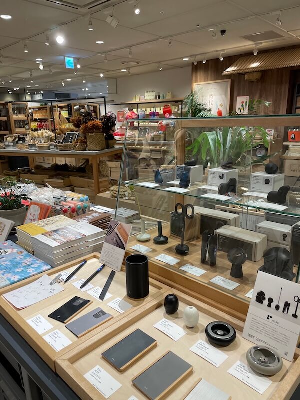 店内はおしゃれな商品がずらり!お茶、お菓子、お酒などのほか、雑貨や小物類、化粧品なども充実しています。