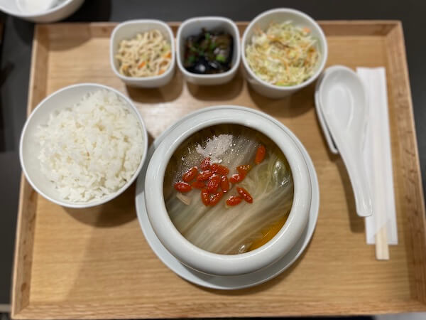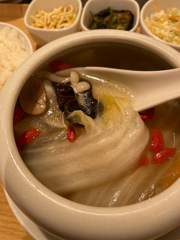 そしてこちらは台湾式「野菜の壺蒸しスープ」定食。1人で楽しめる台湾伝統料理です。