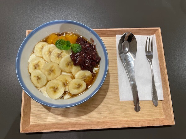 まさに豆腐の味わいですよね〜。甘味なのに豆腐風だから、罪悪感がないし重くない!バナナの甘さと豆花のまろやかさがマッチします。もちもちの「いももち」も入って、食感のアクセントになっていました。