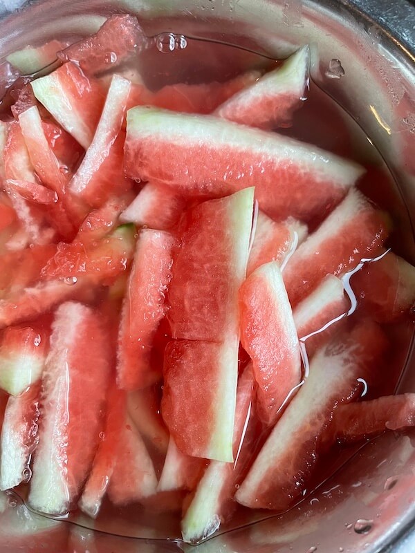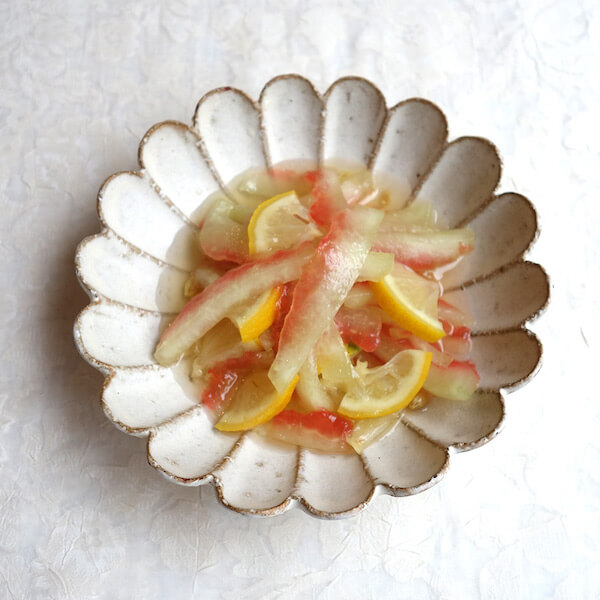 緑の部分も乾燥させてお茶などに利用できますが、手軽に食べられるのが緑の皮と赤い部分の間の白い部分です。昔「おばあちゃんがスイカの皮を漬物にしてくれた」という人も多いんじゃないでしょうか。