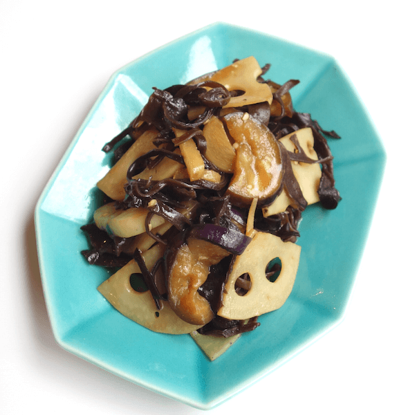 体の熱感をとりながら血を補い、めぐりをよくする一品。黒きくらげ、れんこん、なす、黒酢と、血のめぐりを改善する食材ばかりを合わせました。黒酢は血を巡らせ、肩こりケア、疲労回復に役立ちます。