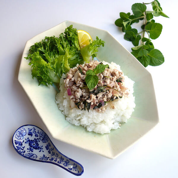 ミントで熱を取り、豚ひき肉で潤いを養うタイ風のレシピ。タイ語では「ラープムー」といいます。最初は「ミントを料理に!?」と感じるかもですが、爽やかで暑い日も食がすすみます。こちらはスペアミントを使用しました。