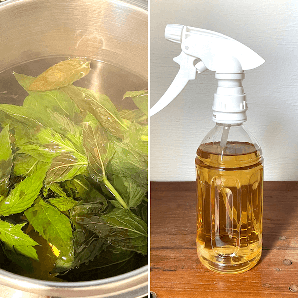 ・鍋に水とたっぷりのミントを入れて10分ほど煮出し、ミント水を作ってスプレーボトルに入れキッチンなどのそうじに。私はアルコールとブレンドして使っています。爽やかな香りになり、冷蔵庫や電子レンジのそうじ、ふきそうじなどに使えて便利。 - ✔︎お風呂の清涼剤に
