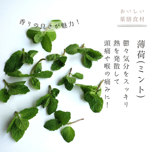 - ・ミントは茎も入れてOK。薬膳では「薄荷梗」といい、気の流れをよくする効果が強めです。