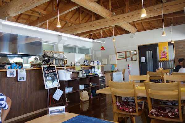 広々とした店内。梁見せ天井が、より開放感を高めています。