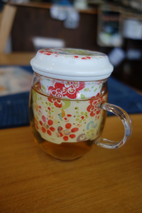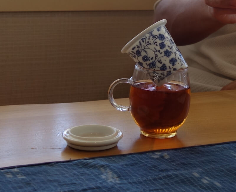 陶器の方に茶葉が入っています。しばらく置いてお茶を抽出したら、陶器のカップを取り出します。