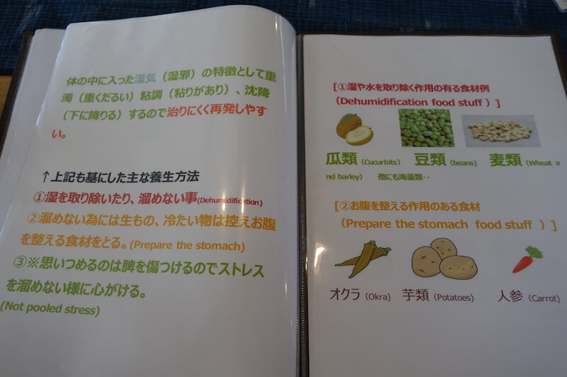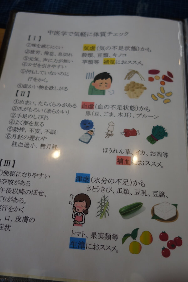 お料理が出てくる間に、メニューブックに書かれた薬膳コラムを熟読。まだまだ勉強し始めなので、「ふむふむ」と読み込みます。