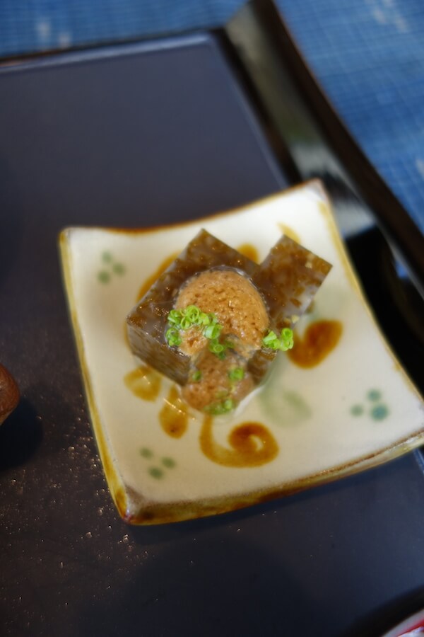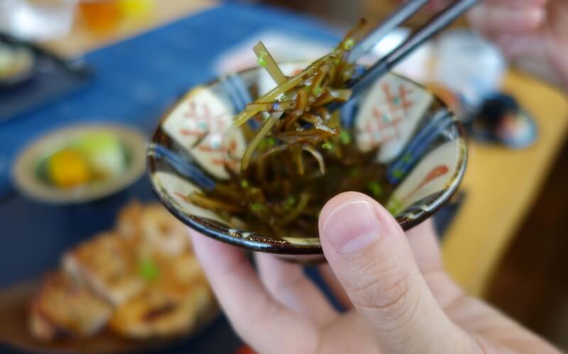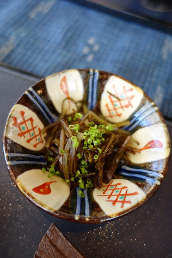 昆布の和え物は、コリコリっとした食感が小気味よく。さっぱりといただけます。