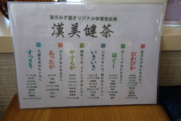 定食の前に体質別の食前茶がいただけるとのこと。うれしいですね。
