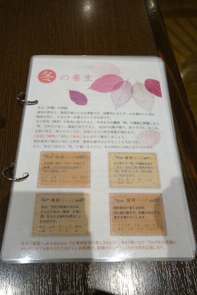 冬は消耗しやすく、生命を司る「腎」が弱って老化のもとになってしまうので、あたためて腎と胃腸をいたわるのが肝心…とわかりやすく書いてあります。