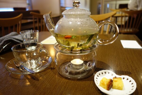 せっかくなので…とブレンド茶もいただいてみることにしました。白のカレーで潤いをチャージしたので、お茶も潤いを…と、体を潤し乾燥から守る「美潤々茶」をオーダー。