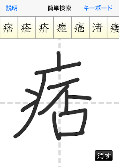 使い方はとっても簡単。例えばこの漢字→「痞え」。