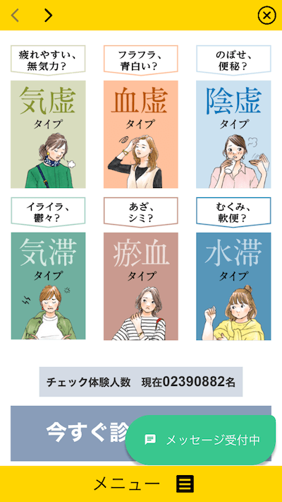 ↓「からだかがみ」では体質チェックができるので、自分の体質を知りたい時にぴったり。