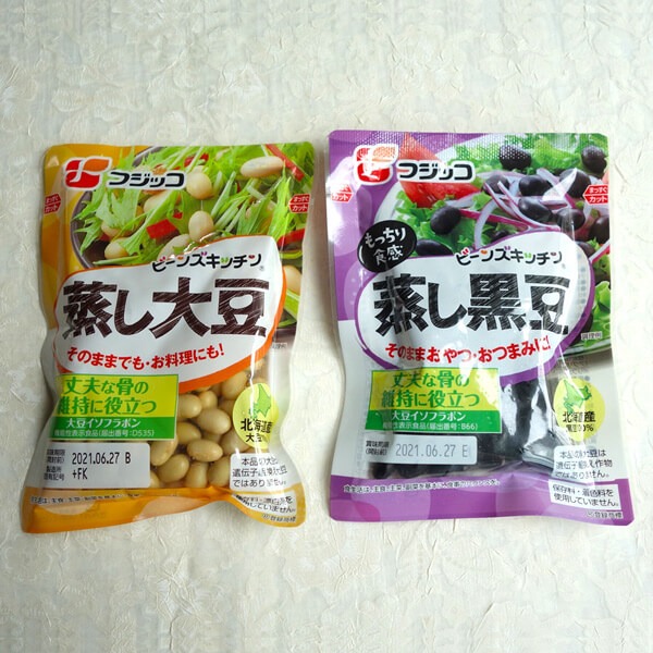 水につけたり茹でたりといった手間がいらない、蒸し豆。黒豆もあるんです。そのままで食べられるので、サラダやスープにすぐ使えます。